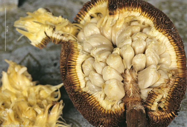 We’ve also had some very interesting fruits. The first was Marang. Looks really strange on the table, this spiky brown thing the size of a lopsided football. Our host dug his fingers into the skin between the spikes and pulled handfuls of skin off to expose the inside … which looked even stranger. White globules of fruit that had the appearance of small, peeled lemons. Kind of papery and white looking. Our host showed us that you take your fork, stab it into one of the globules, and put it in your mouth. You spit out the seed inside each globule, but the rest is edible. So, with hesitation, I tried a bite. And I really like it! It is somewhat banana-like in texture, but the taste is more acidic and spicy. Very good, especially as a surprise. A new favorite fruit for me.
