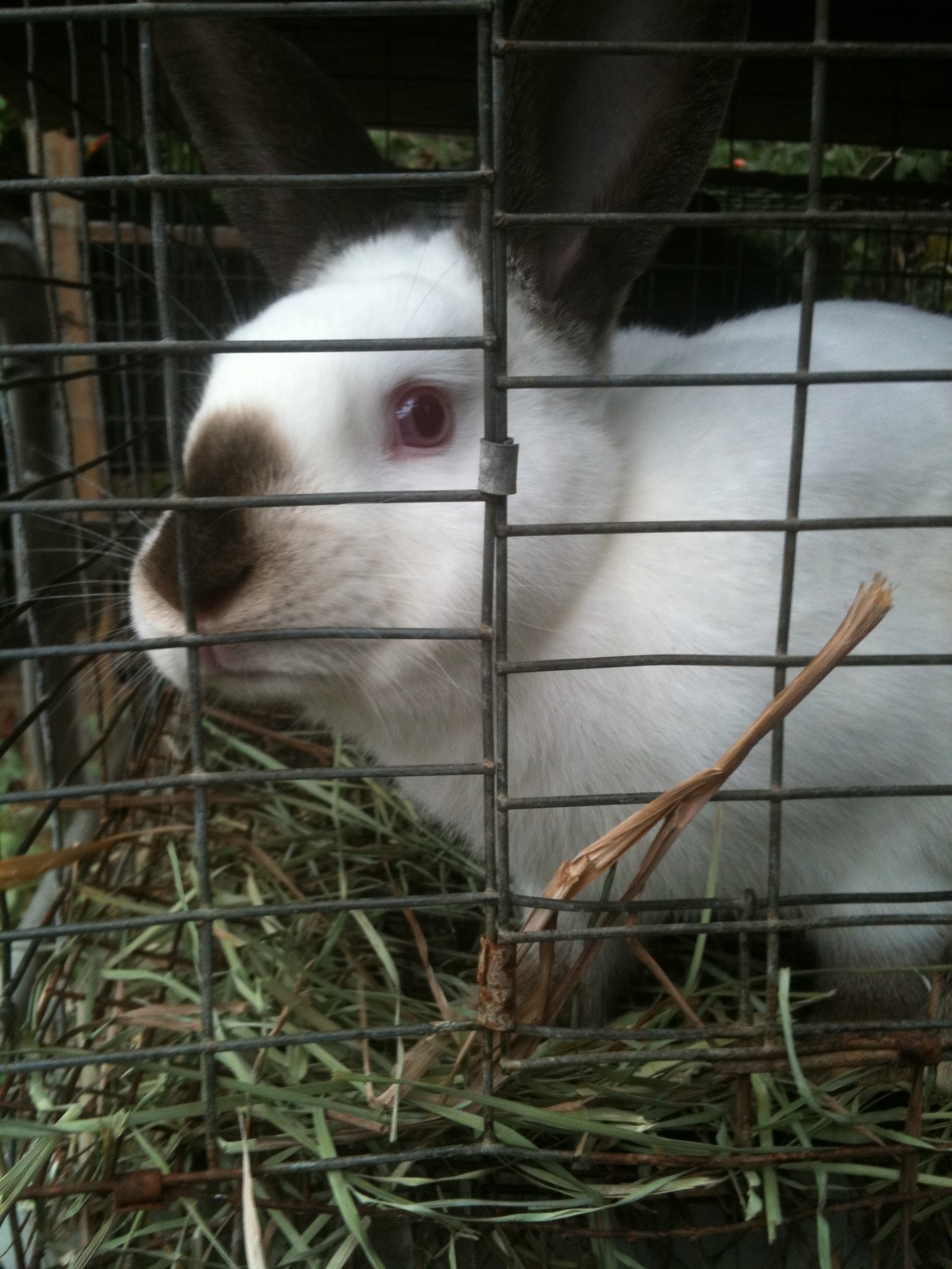 I remember one of my doe rabbits was put in with the buck about a month ago, and should be put into a hutch alone to prepare for the (hopefully) impending kits. So I go out to rearrange everybody. (Opossum is still in the compost pile. Probably dead, right?) Put another doe in with a buck she’s not been with before, and watch to be sure nobody is going to get hurt. Nah, they’re just playing chase, so I go move the daddy buck to leave the momma-to-be doe in the cage alone. Then I go get the nestbox (and remove all the junk that has accumulated in it since the last time it was used… seriously, why does all this stuff not stay where it’s put? It always grows legs and moves onto whatever it is that I want at the time!) Then I fill the nestbox with hay, scattering hay all over the garage floor in the process. (It’s a new type of hay that’s seriously cheaper, but not baled nearly as well. I’ll have to keep track of how much is wasted to see if it really is cheaper or not. Better write that down or I’ll forget…)